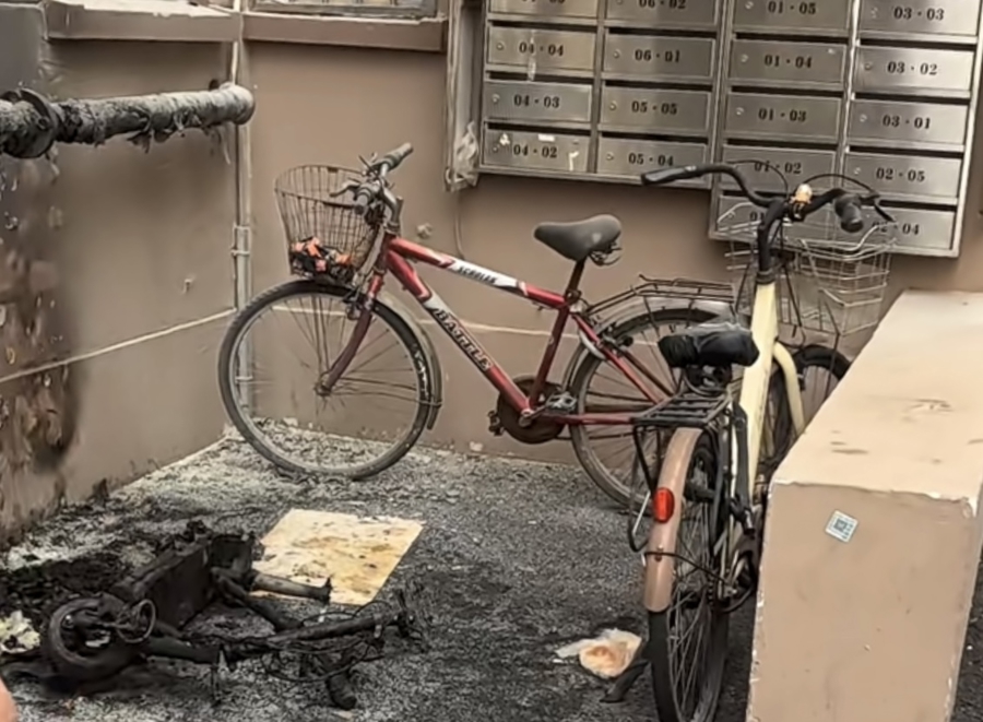 居民告诉记者,火情发生在昨天下午1点多,当时,停放在24号居民楼外的一辆滑板车突然起火,飘散黑烟,有居民发现情况后拨打了报警电话。